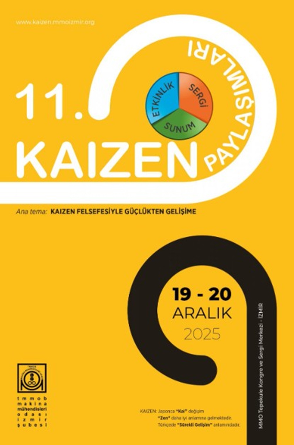 DT-7529 Parçasında Vardiyalık Hedef Adede Ulaşılamaması TMMOB Makina Mühendisleri Odası İzmir Şubesi tarafından Endüstri İşletme Mühendisliği Meslek Dalı Komisyonunca organize edilen 11. Kaizen Paylaşımları Etkinlik 19-20 Aralık 2025 tarihlerinde İzmir MMO Tepekule Kongre ve Sergi Merkezinde gerçekleştirilecektir. TMMOB Makina Mühendisleri Odası İzmir Şubesi tarafından, 2008 yılından bu yana gerçekleştirilen Endüstri Mühendisliği Bahar Konferanslarının merkezine “Yalın Üretim” anlayışı konuldu, bu çerçevede “Yalın-Altı Sigma” ve “Yalın Dönüşüm” konuları ele alındı. Gelen talepler ve gösterilen yoğun ilginin ardından 2014 yılında “Toyota Tarzı Üretim” ve “Dünyayı Değiştiren TPM” etkinlikleri organize edildi ve geniş katılım ile gerçekleştirildi. Daha sonraki süreçte üyelerin talepleri doğrultusunda “Kaizen Paylaşımları” etkinliği gerçekleştirildi ve yoğun ilgi gördü. Sonuncusu 2024 yılında, Tepekule Kongre ve Sergi Merkezinde 1750 dolayında mühendis ve teknik elemanın katılımı ile gerçekleştirildi. Makina Mühendisleri Odası İzmir Şubesi’nin bu etkinliği düzenlemekteki amacı; “sürekli gelişim” anlamına gelen Kaizen felsefesinin daha iyi anlaşılmasına, uygulama alanlarının genişletilmesine ve bu yaklaşıma gereken önemin verilmesine katkı sağlamak.